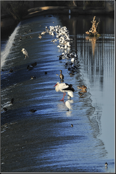 Ni que decir tiene que suele ser interesante seguir con la cámara los desplazamientos de las aves que caminan sobre el azud e ir probando con distintos fondos.
