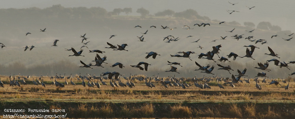 grullas alzaron el vuelo desde los comederos de las dehesas para llegar de